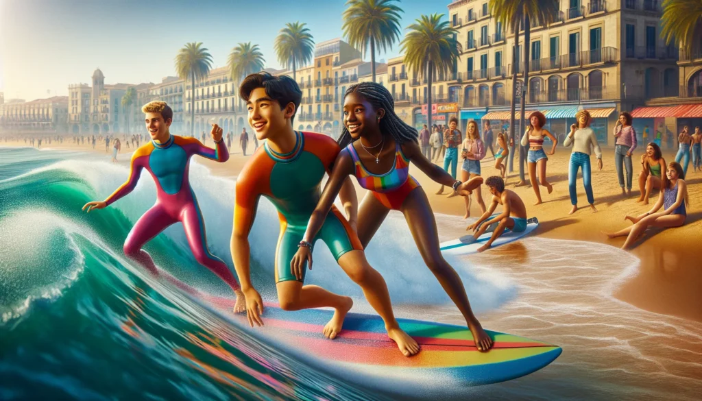 - Mer: J’opte pour une côte animée avec spots débutants et intermédiaires par exemple Biarritz Algarve Costa Brava pour surf paddle skatepark et clubs ados.